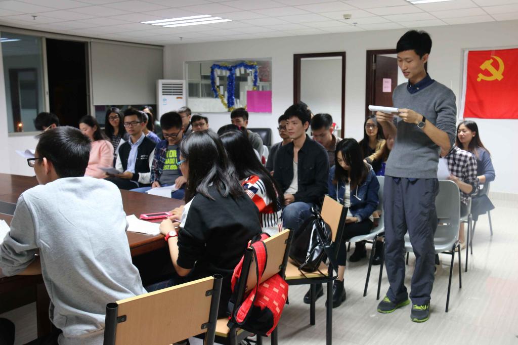 2015114日晚八点半,我系学生党支部预备党员转正暨发展对象通表大会在行政楼405顺利举行。出席本次大会的人员有:系党总支副书记、学工助理蒋大锐老师,系教职工党支部书记王忍老师,系学生党支部书记蒋云丽老师,全体学生党员及6名发展对象