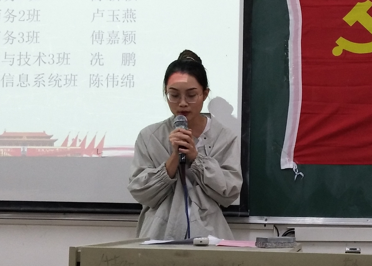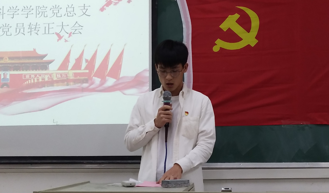 本期转正的5名预备党员依次上台宣读转正申请书,汇报了自己在预备期间中的表现,总结了在思想、学习、生活以及工作上的进步,最后表达了自己加入中国共产党的志愿和坚定的决心。