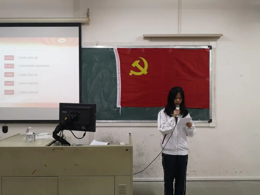 讨论发展对象的入党问题,首先是19名发展对象依次上台宣读入党志愿书,汇报个人在被发展培养期间的思想、生活、学习、工作等方面的情况,同时,他们表明自己坚定的信仰,积极向党组织靠拢的立场,并向党组织郑重提出转预备申请。随后与会的正式党员讨论发展对象的发展问题,拥有表决权的党员逐一对19名发展对象进行不记名投票表决。经表决,一致同意接收林健航等19名同志为中共预备党员。