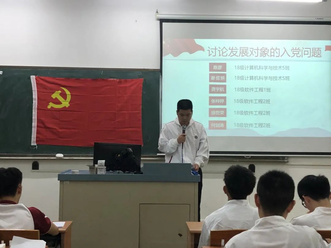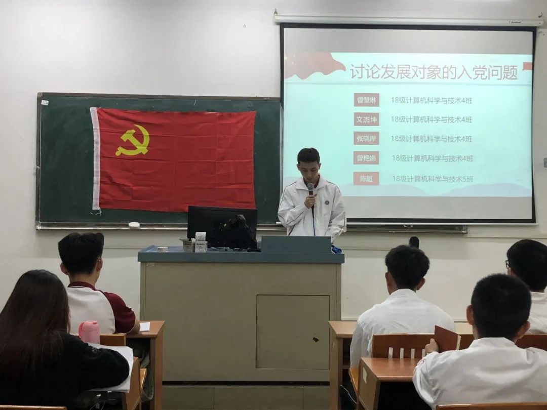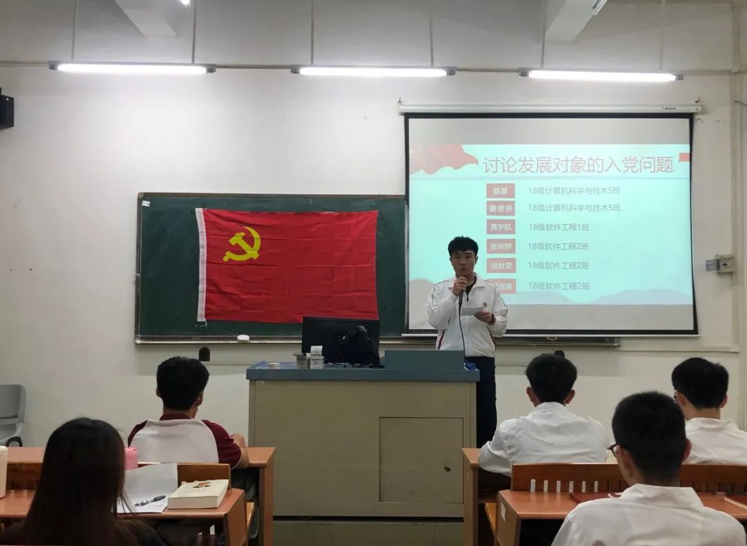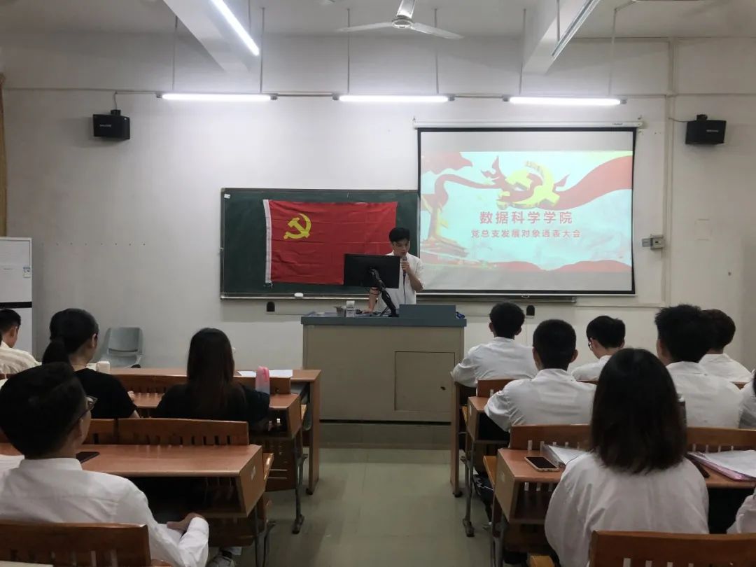 为进一步加强基层党组织建设,发展壮大学生党员队伍,端正入党动机,提高党员质量。2020年10月21日18:20,数据科学学院党总支学生第一党支部第21期发展对象通表大会在励志楼D302顺利召开。出席本次大会的有数据科学学院学生第一党支部书记谢朋涛老师、数据科学学院学生党支部全体党员以及第21期发展对象。