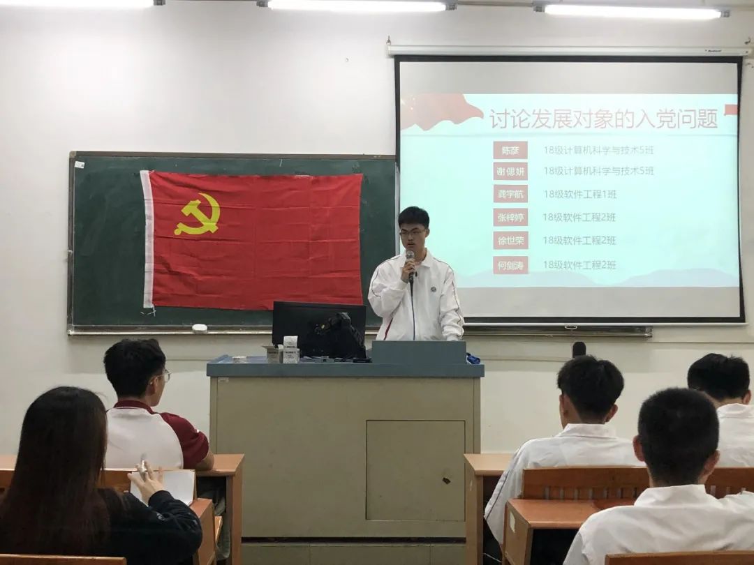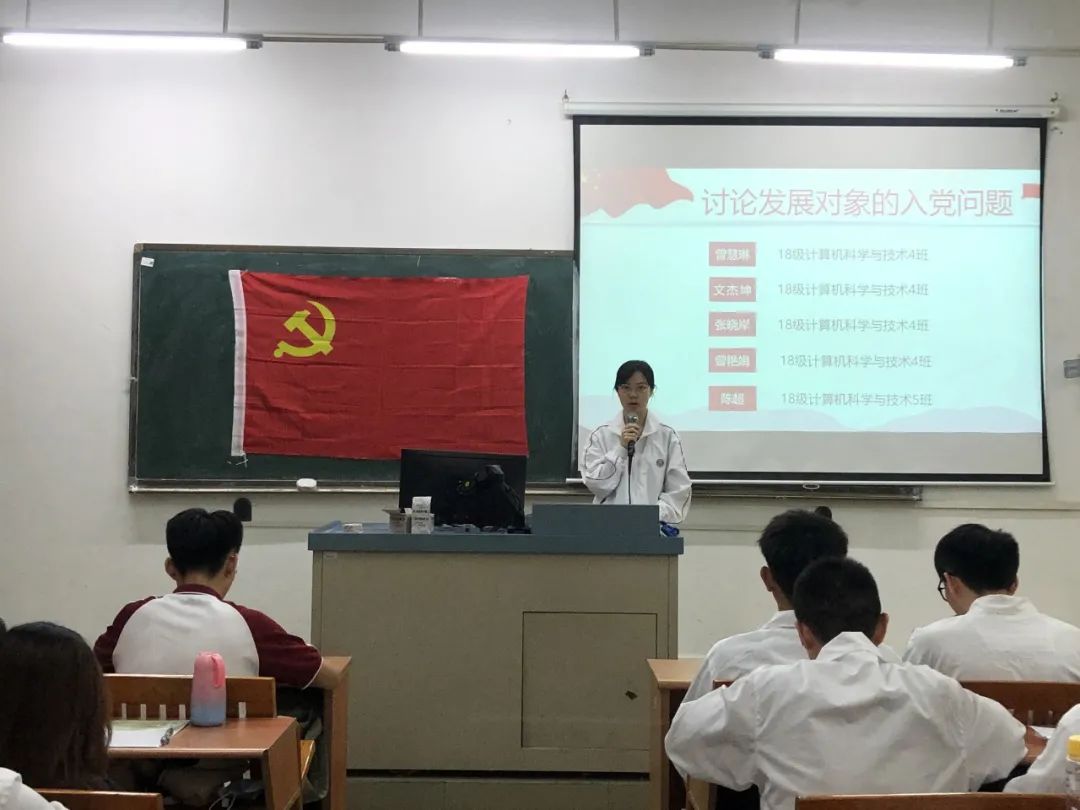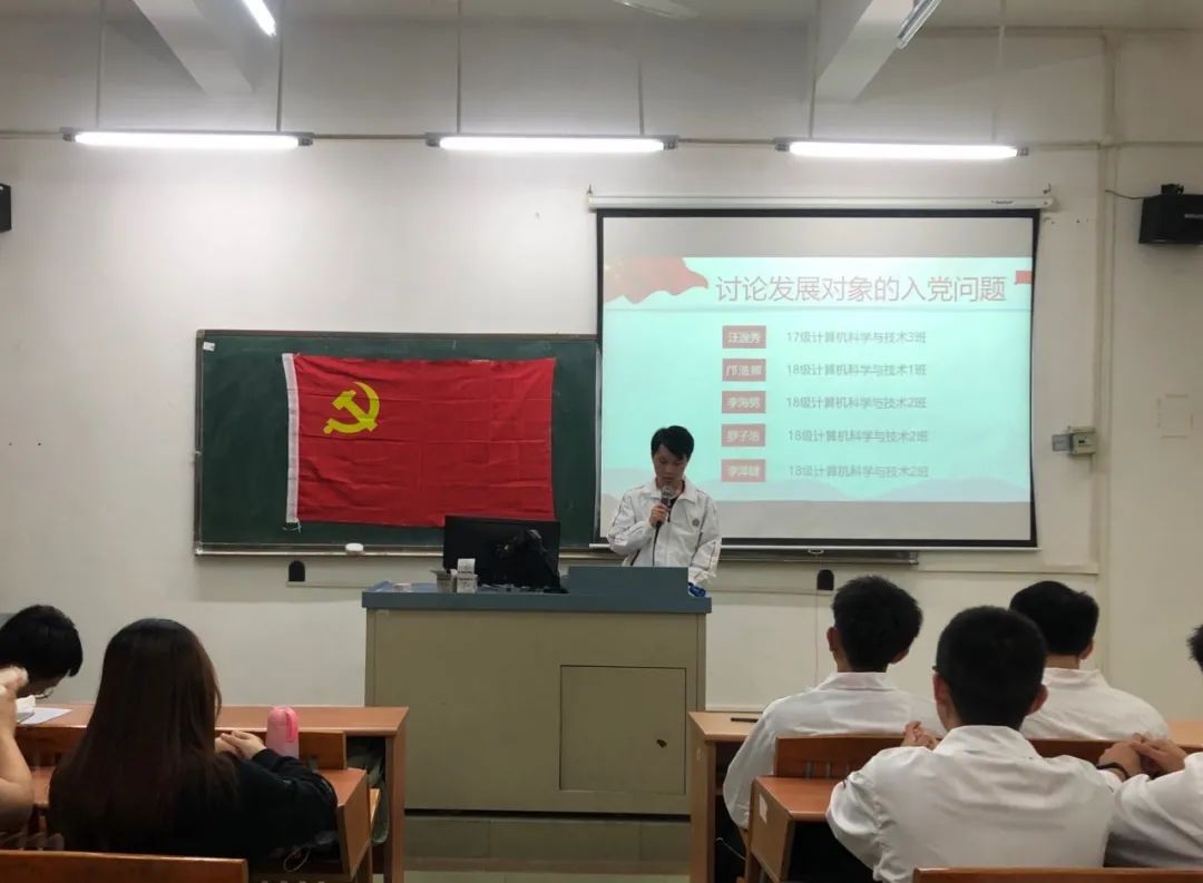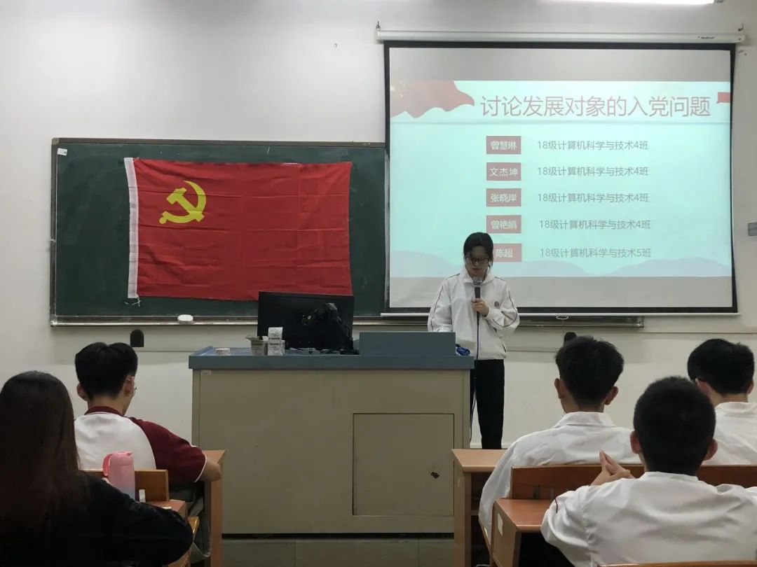 为进一步加强基层党组织建设,发展壮大学生党员队伍,端正入党动机,提高党员质量。2020年10月21日18:20,数据科学学院党总支学生第一党支部第21期发展对象通表大会在励志楼D302顺利召开。出席本次大会的有数据科学学院学生第一党支部书记谢朋涛老师、数据科学学院学生党支部全体党员以及第21期发展对象。