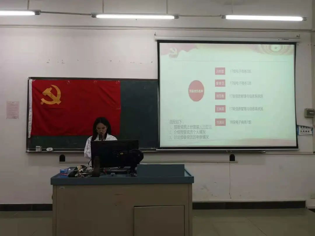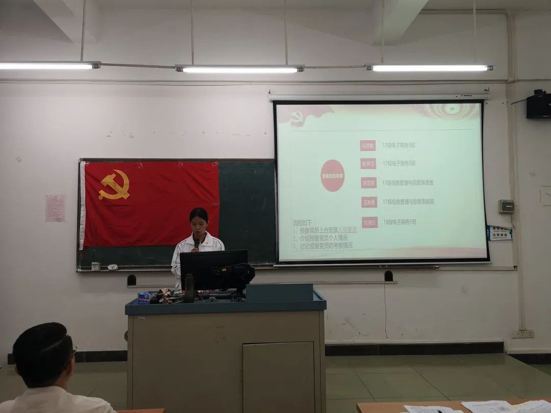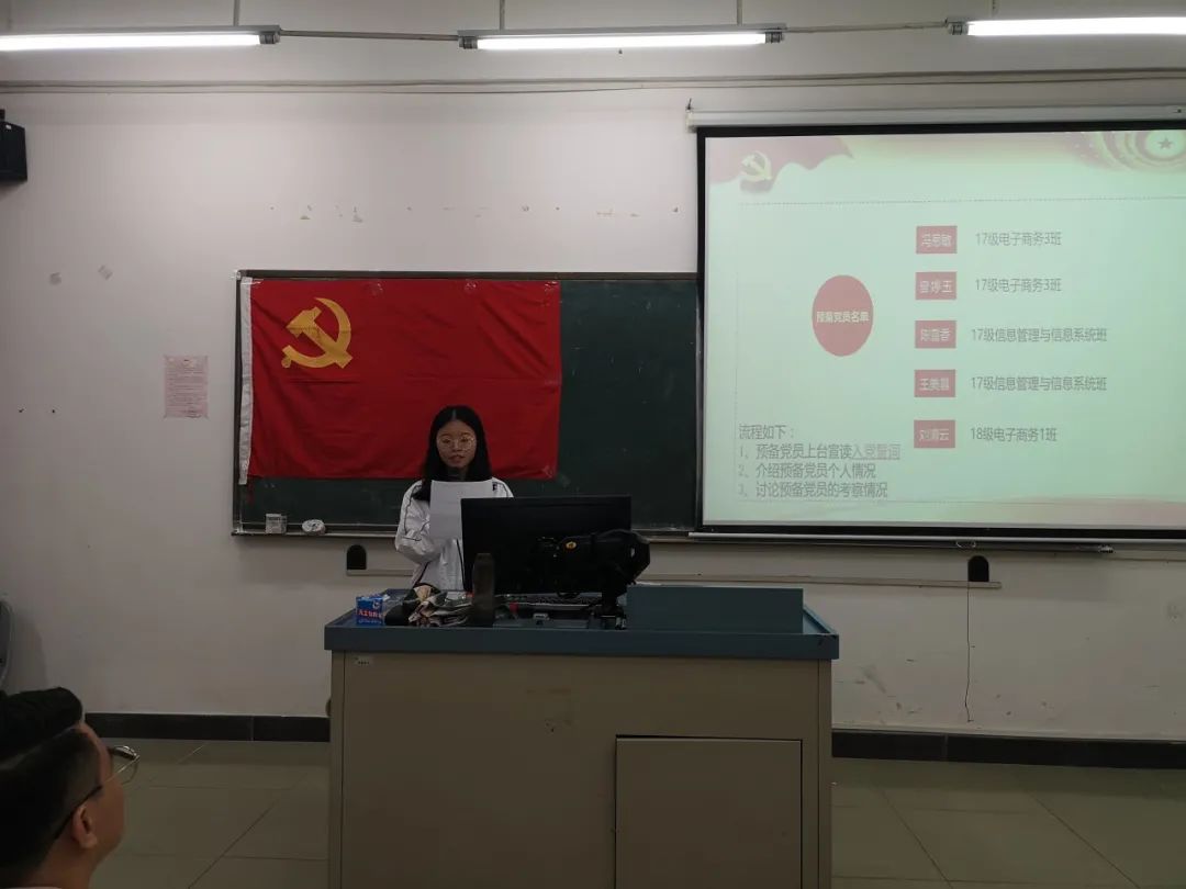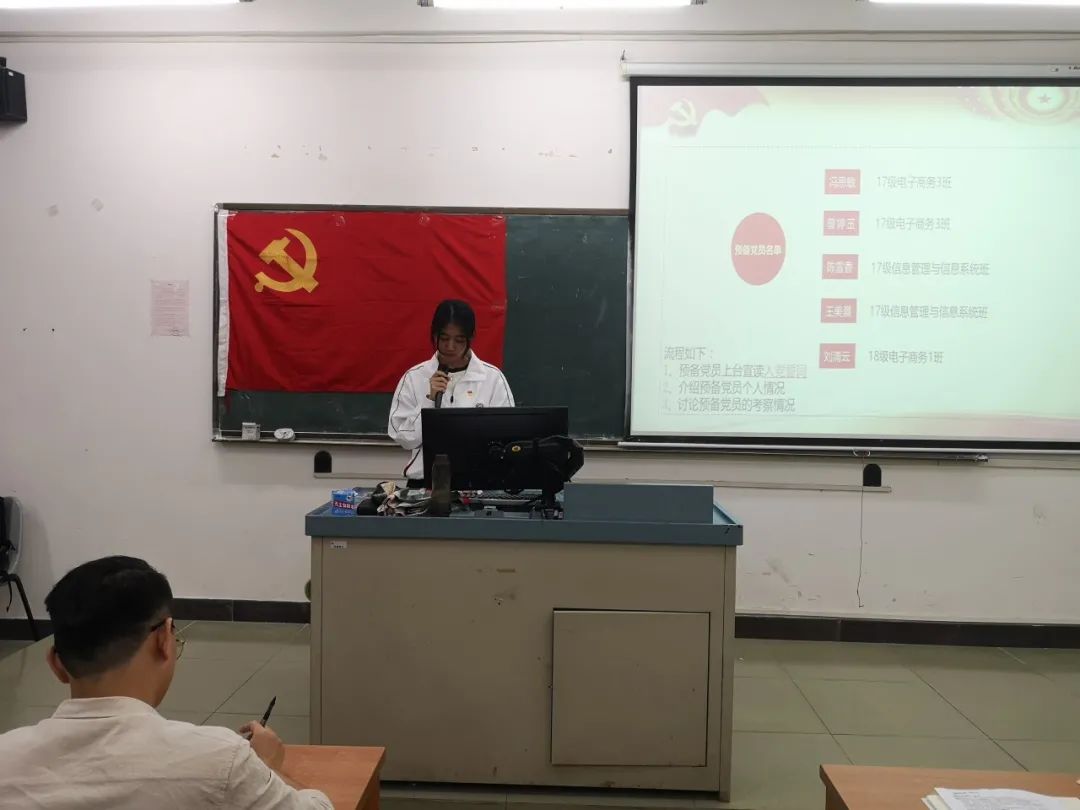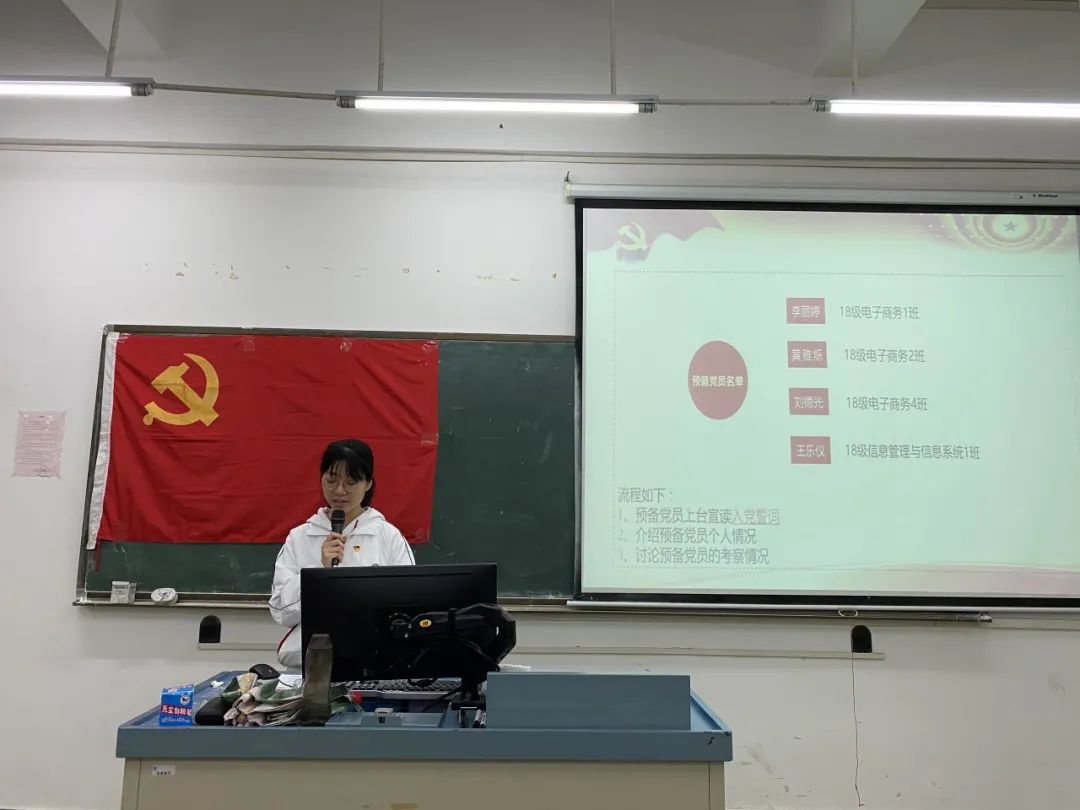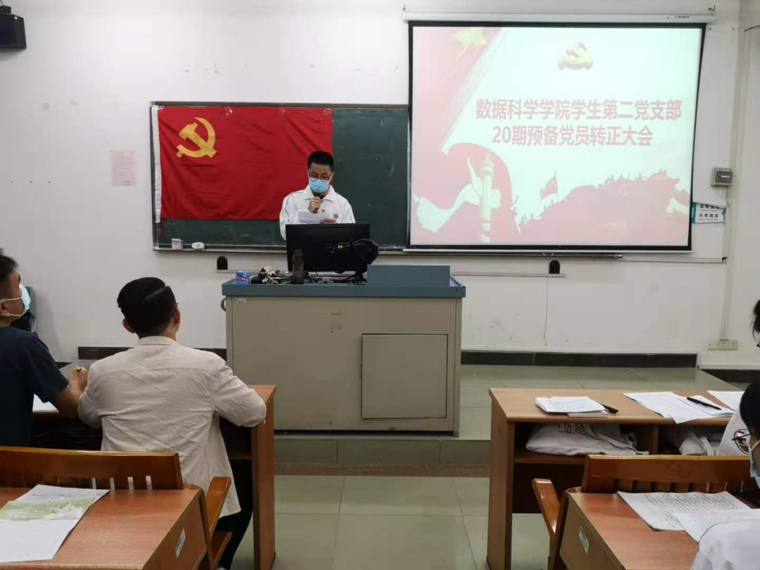 2020年11月23日17:45,数据科学学院学生第二党支部于励志楼D302教室召开预备党员转正大会,大会由方智峰同志主持,学生第二党支部书记官志豪老师、党支部全体党员参与了本次会议。
