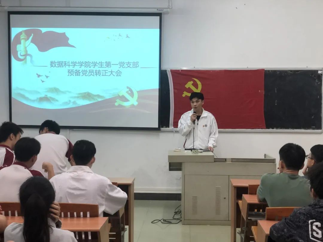 2020年11月18日18:20数据科学学院学生第一党支部在励志楼D301顺利召开预备党员转正大会。大会由林维跃同志主持,学生第一党支部书记谢朋涛老师、党支部全体党员参与了本次会议。