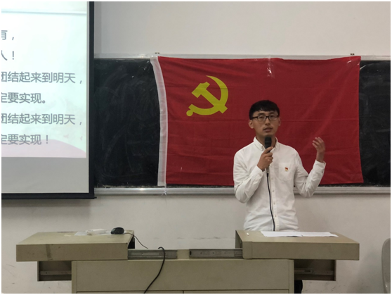 另外,就本学年工作开展的整体情况进行了简要的说明。他表示党支部对于党员的培养和发展进行了进一步的规范,特别是程序规范上,严格按照入党的基本流程,扎实做好每一阶段的材料。同时他指出在新形势下,党支部的工作中还存在着一定的问题,并表明党支部将会正视问题,虚心求教,解决问题,不断总结经验。最后他对党支部未来的工作提出展望:一、继续加强三型党支部建设,充分发挥党支部战斗堡垒作用。二、将支部活动与我院学生专业符合的工作进行更多开拓与创新。三、继续积极探索学习和活动的新方式、新方法。