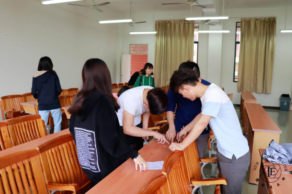 动员大会结束后,同学们按照安排好的任务,到指定课室进行打扫。在劳动中,同学们积极踊跃,用尽“浑身解数”,借助小刀、抹布、扫把、钥匙,尺子,等工具与课室垃圾斗智斗勇,有的同学走进厕所,与厕所的小广告战斗到底,发挥了不怕苦,不怕累、任劳任怨的服务精神。期间辅导员老师亲力亲为,与同学们一起劳动。