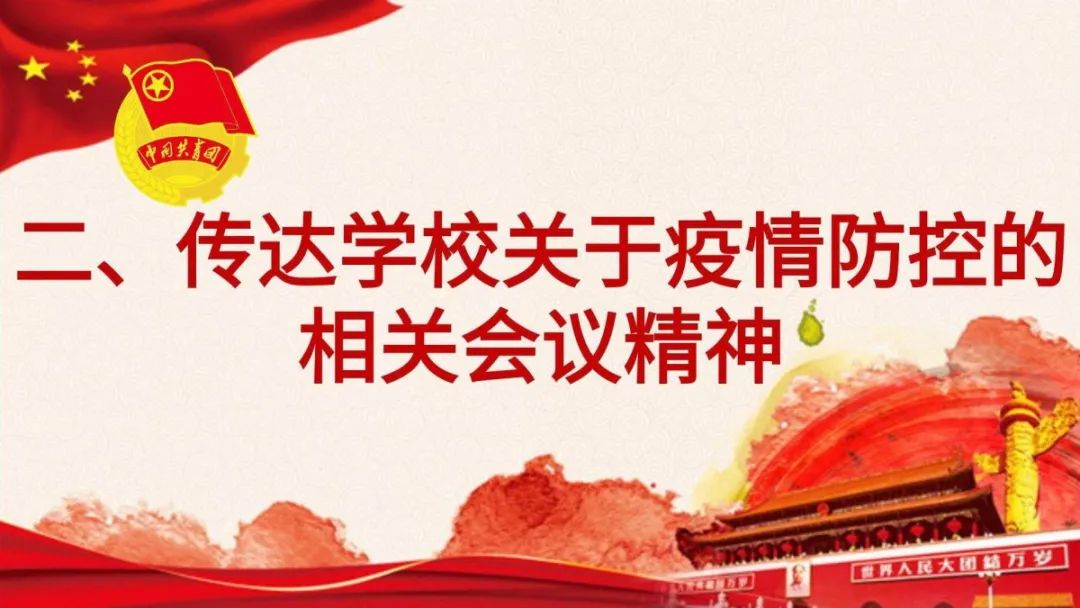 接下来,由成金戈同学传达学校关于疫情防控的相关会议精神,也希望同学们在疫情期间,要注意保护好自己。