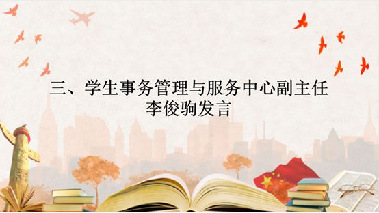 学生事务管理与服务中心副主任李俊驹在会议中明确了2019—2020第二学期的工作安排。此外,他还强调网上教学考验的是我们的自学能力以及自觉性,告诉我们无论身处什么环境,都应该提高自觉性,调整好自己的学习态度,完成学业。