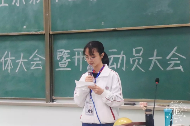 接下来由新闻部及辩论队干事郑嘉雯同学发言。她表示作为团学的一员,要反复鼓励自己,严格要求自己,要用最认真的态度对待部门的工作与学习。在新的学期里,作为学生不但要兼顾学习与工作,更重要的是超越昨天的自己。