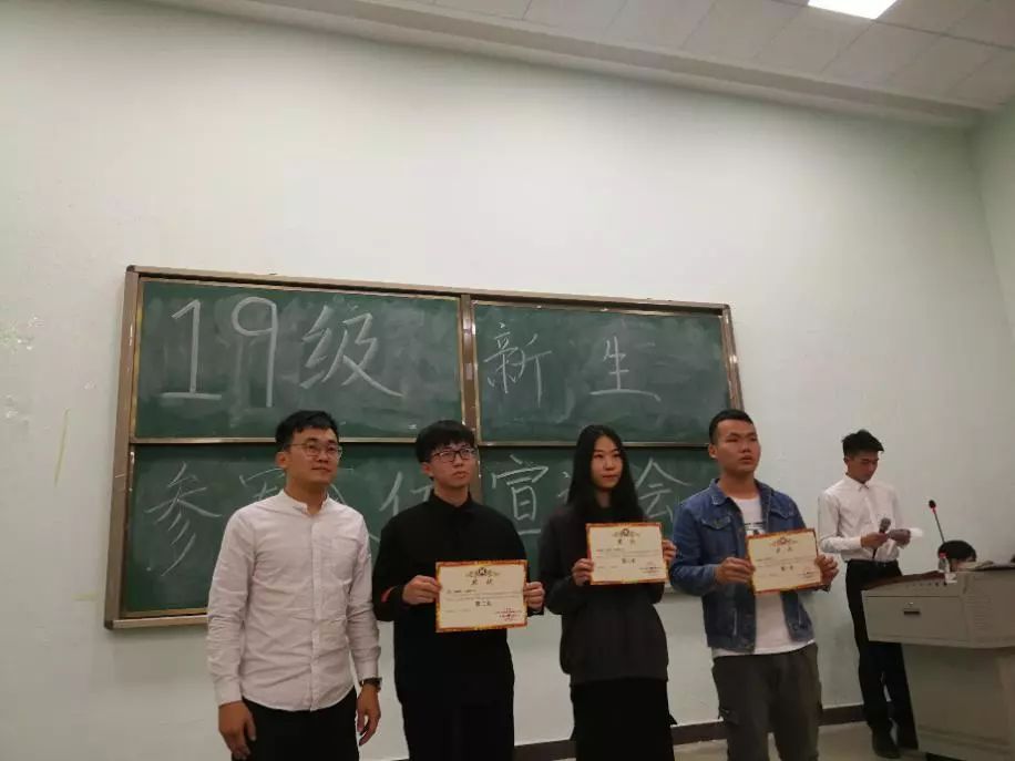 首先是颁奖环节。本次宣讲会为“不忘初心担使命,弘扬青春国防梦”国防安全知识主题班会评选活动获得前三名的班级班会负责人代表颁奖。