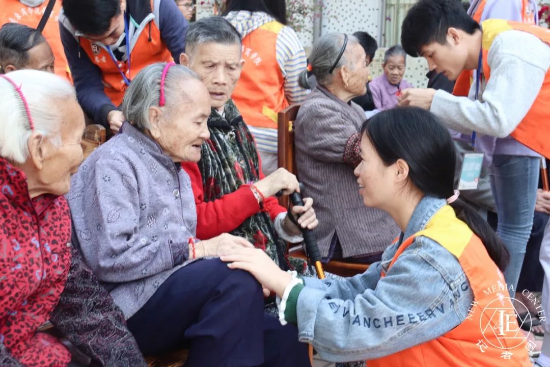 随后志愿者将爷爷奶奶们送回住处,还同他们聊天说笑。小小的过道上都是志愿者的身影,他们搀扶着爷爷奶奶,与他们交谈时的欢声笑语也回荡在这个温暖的院子里。