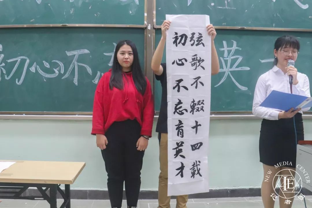 随后,便是《我的华商》作品朗诵以及现场书法手写祝福。朗诵者以缓慢柔情的声音,轻声诉说着华商学子对华商的热爱之情。陈倩芸同学则用形神具备,气势磅礴的书法,为华商献上美好的祝愿。
