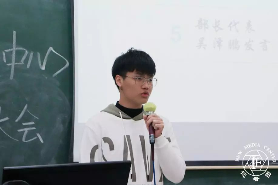 首先是助理张俊伟发言。张俊伟同学表示很高兴可以融入学生事务管理与服务中心这个大家庭。加入学生事务管理与服务中心后,自己所负责的工作,发现有进步,也有不足,并表示自己会以更加饱满的状态投入下学期的工作当中。希望在老师以及师兄师姐的带领下,可以更好地锻炼自己,学会更多技巧,为学生事务管理与服务中心更好地贡献自己的力量。