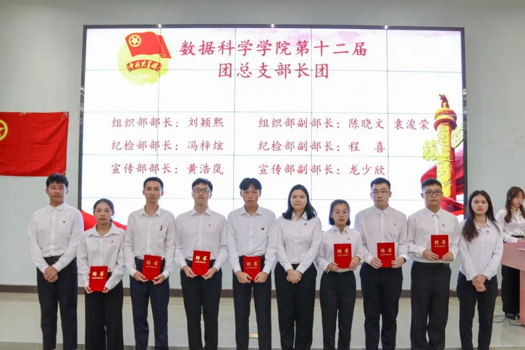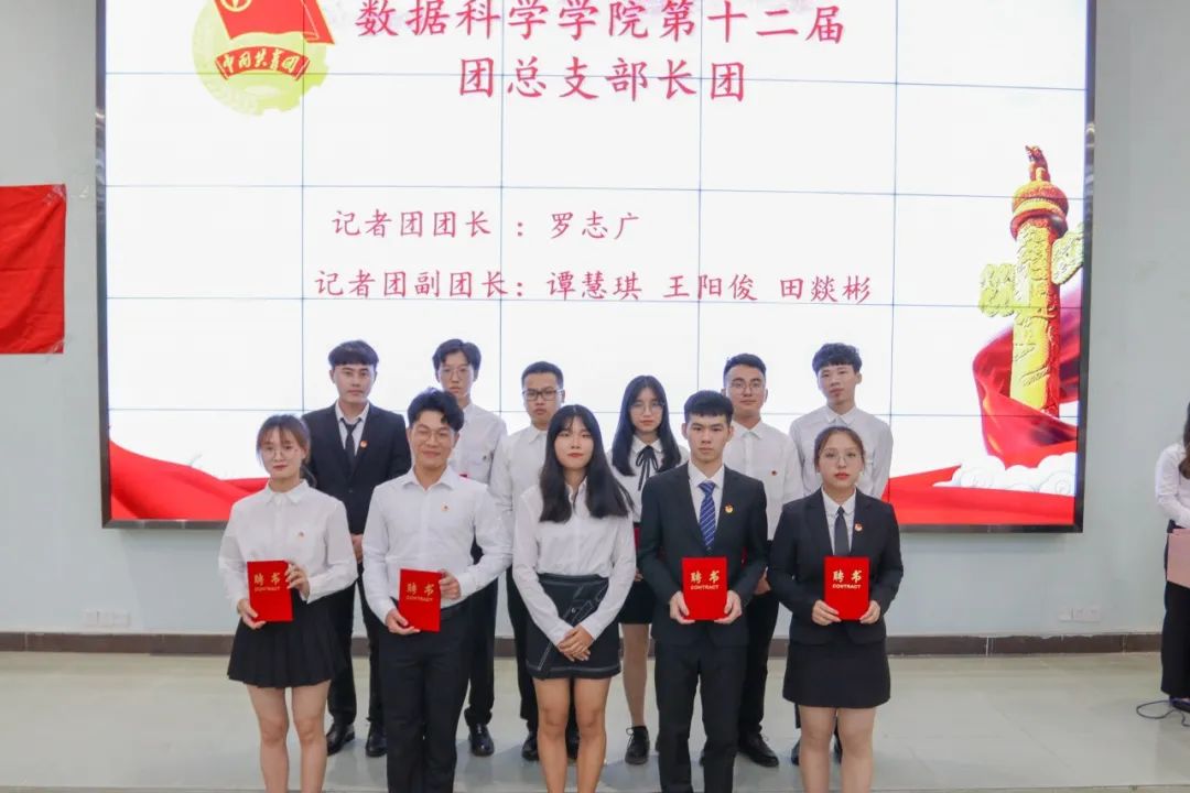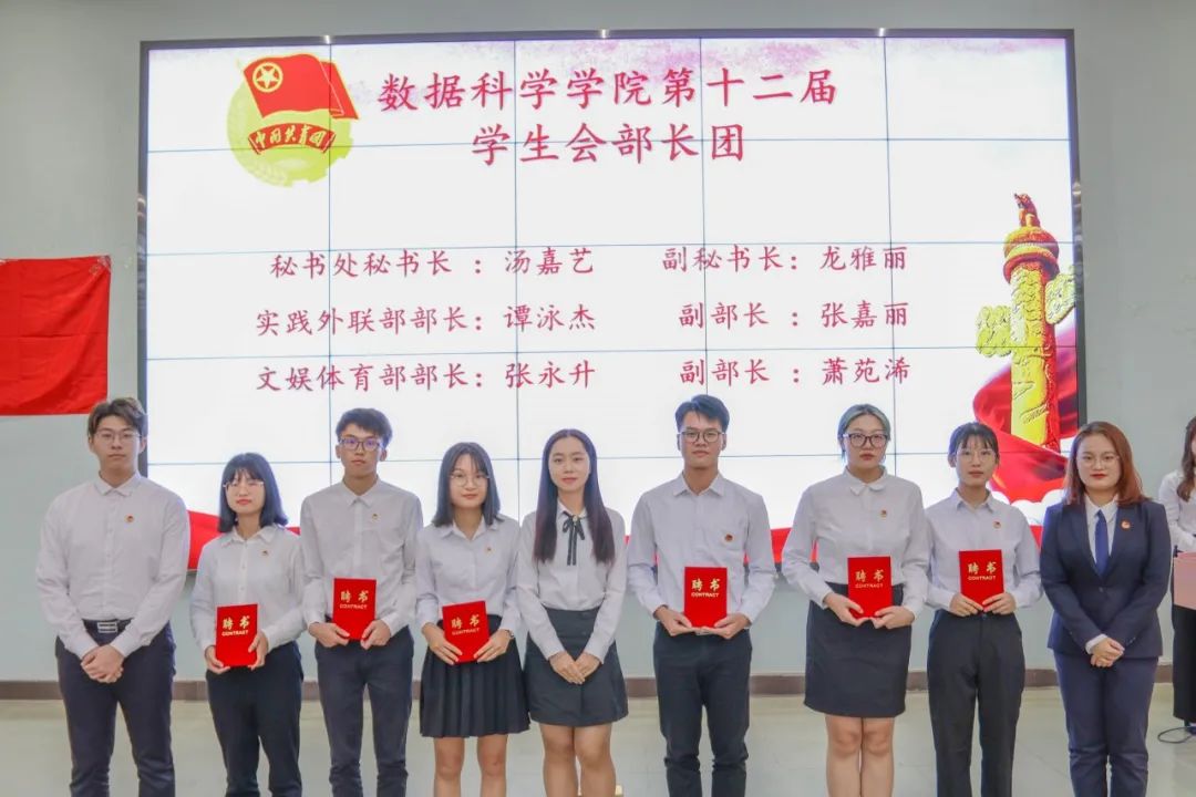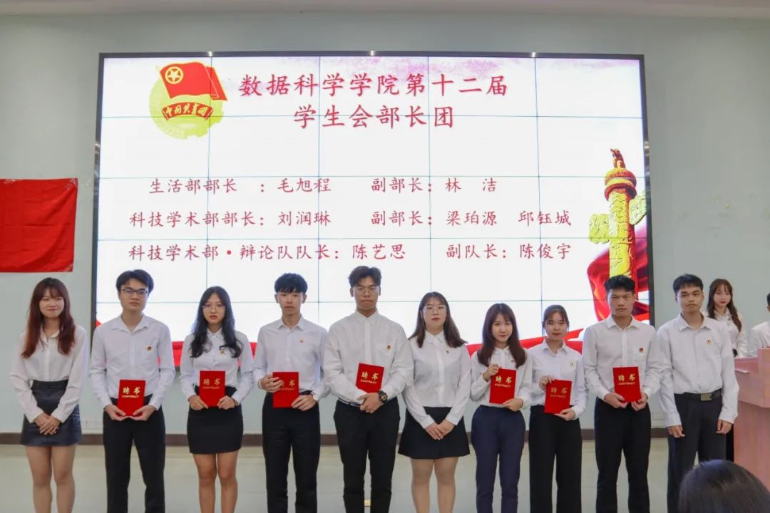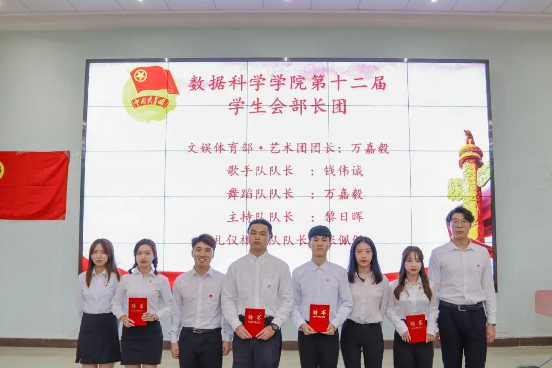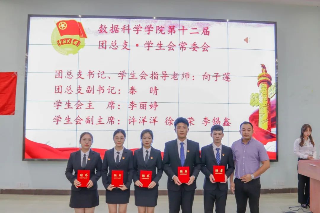 莅临本次大会嘉宾:数据科学学院党总支书记,学生工作副院长蒋大锐老师;数据科学学院第十二届团总支书记,学生会指导老师向子莲老师;学生事务管理与服务中心指导老师蓝光进老师;数据科学学院辅导员黄比悉老师;数据科学学院辅导员张雅茹师姐;数据科学学院辅导员欧阳绮琪师姐。
