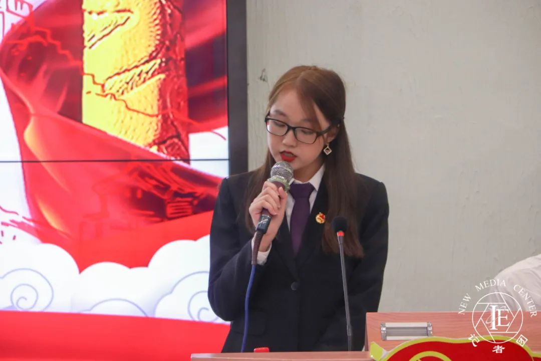 数据科学学院团员代表秦晴同志上台发言。她表示,我院团总支以服务大局、服务青年为己任,发扬创新精神,在建设校园方面起到了很大的作用。她引用“青年一代有理想、有本领、有担当,更要牢记初心、脚踏实地。”来激励同学们。最后,她希望在新的一年里,以更饱满的热情,充足的干劲去迎接新的挑战,开创新的局面,为实现数据科学学院更好更快发展贡献青春和力量。最后,她向青年团员提出几点倡议:1、树立正确的世界观、人生观、价值观。2、严以律己,全面发展。3、不忘初心,牢记使命。
