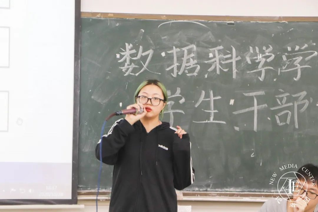 第三项议程,学生党支部代表发言。学生党支部代表黄雅烁详细介绍了入党的流程以及目前数据科学学院党总支的概况。她的介绍使学生干部们对学生党支部有一个更清楚的了解。