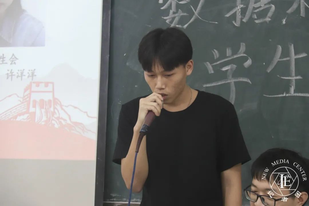 第五项议程,团总支·学生会生活部部长发言。团总支·学生会生活部部长毛旭程上台为同学们详细地说明了申领申购物资流程。他提出申请物资时在申请的过程要填表格向生活部部长申请,同时强调了申请物资的时间和要遵守的相关准则。