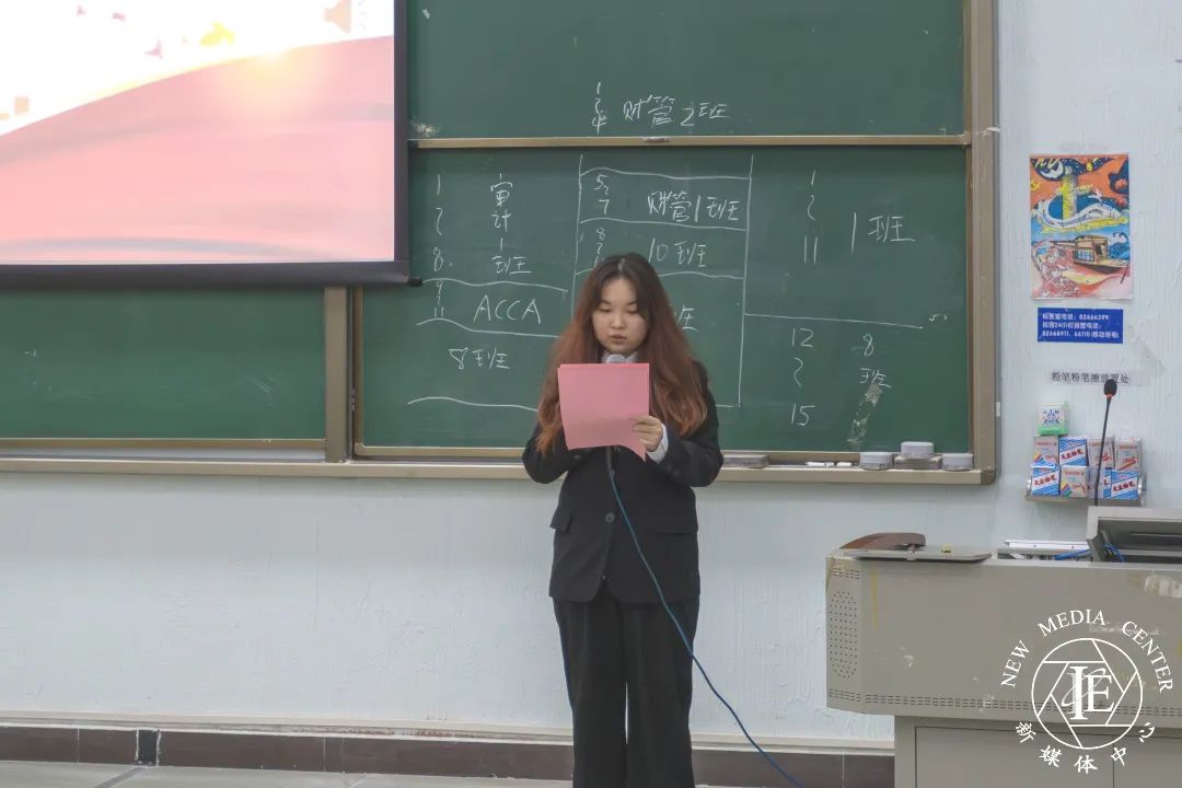 学生代表邱姿同学发言中就考风考纪向全体成员进行了以下三个方面的号召,一是考试前,加强自我约束,树立正确的学习态度和价值观。二是考试中,严格遵守规则。三是在个人做答完毕后,尊重考试的保密性,不向他人透露考题和答案。她呼吁全体成员做到严守考试纪律、塑造优良作风,共同营造一个公平、公正的考试环境。