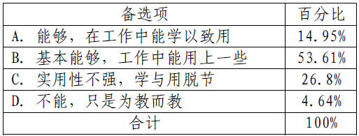 问题:您认为学校的教学能否体现出“应用型人才”的办学定位?