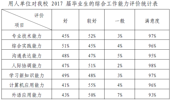 (一)用人单位对我校 2017 届毕业生综合素质的评价