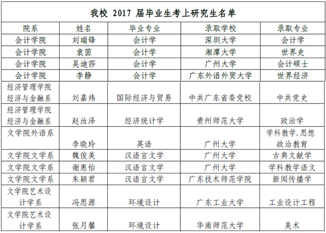 2017 年我校毕业生考上研究生共 12 人,名单如下:
