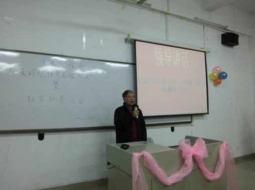 20121212,我系2012-2013学年第一学期文明纪律教育月总结暨期末动员大会在创新楼E101胜利召开。出席本次大会的领导有:系主任骆耀祖、系党支部副书记蒋大锐、学生党支部书记蒋云丽、系办公室副主任王艳、团总支书记,学生会指导老师王忍。