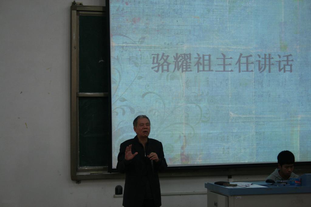 文明校园共创建,纪律同行展新风。2015年3月17日下午3点整,我系“文明纪律月动员大会”在励志楼D208顺利举行。莅临本次大会的领导和老师有:我系骆耀祖主任,办公室副主任古文胜,系党总支副书记、学工助理蒋大锐老师,系团总支书记、团学指导老师王忍老师、学生党支部书记蒋云丽老师,教学秘书卢贺生老师等。