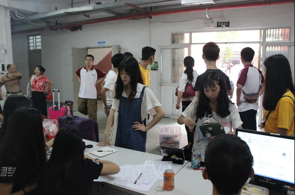 朝阳初起,草儿抬头,青春的风一股劲儿涌进了学院。带着雀跃而充满期待的目光,踩着忙碌却轻快的脚步的新生们,在家人的陪伴下提着大包小包走进来,他们的眼睛里,都是梦想的模样。在华商的正门,学院的志愿者们举着各系的牌为新生和家长指引道路。在系大本营处,新生完成签到,寄放行李后,便有工作人员带他们去图书馆进行校对、缴网费或拿宿舍条后,返回大本营拿行李,再由工作人员带领他们回到自己的宿舍。每一个小流程都有迎新工作人员为他们指引,使得整一个迎新流程井然有序的进行着。