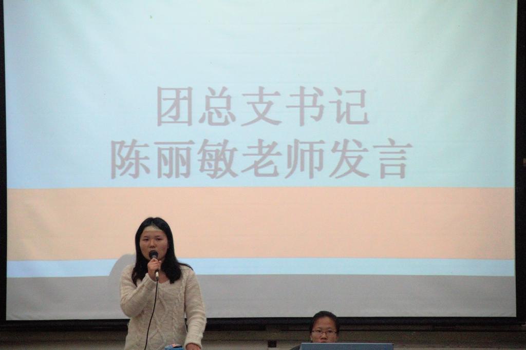 大会开始,由团总支书记陈丽敏老师发言。陈丽敏老师对上学期团总支学生会各部门在各活动中通力合作的表现表示赞扬,但也指出了同学们做得不足的地方,如部分团学成员缺乏积极性、各部门在工作上的缺乏沟通及工作细节待加强等。同时,陈丽敏老师表示,在新的学期,新的任务也随之而来,希望同学们能加强学习,努力提升自己,积极承担自身的职责,培养团结协作无私奉献的精神。