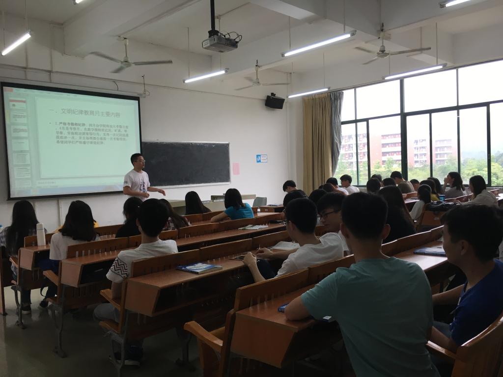 2016级各班班会上重点强调了出勤率问题以及安全问题,教育同学们要自觉遵守校规校纪,禁止同学们使用大功率电器,要注意语言文明,礼貌对待同学和师长。辅导员陈旭老师强调了纪律问题,对班上的出勤问题提出了意见,同时明确提出了宿舍禁止使用大功率电器并强调了其后果的严重性。辅导员丁伟老师向同学们强调了“安全文明教育月”应该注意的事项,分析了校园贷的危害,倡导同学们不要加入校园贷的活动,避免进入陷阱。老师还在会上提出我们要合理利用自己的时间,处理好学习与工作的关系以及部门与班级的关系。