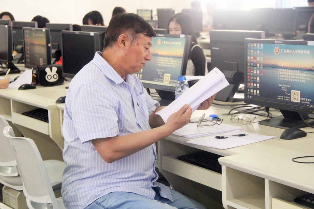 在厚德楼A202及A203进行的是2013级计算机科学与技术专业的毕业生论文答辩。在工作人员的配合下,答辩在紧张的氛围中有序展开,同学纷纷展示自己所设计的系统并加以简洁的语言向老师演示与解说,精彩的展示吸引了不少2014级与2015级的学生前来观摩,而老师们亦结合现实与操作上系统的缺陷给予精准的点评。