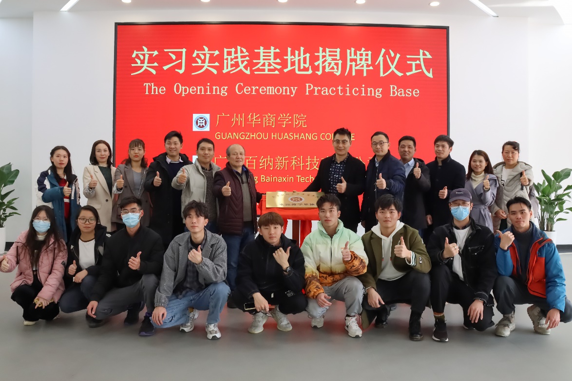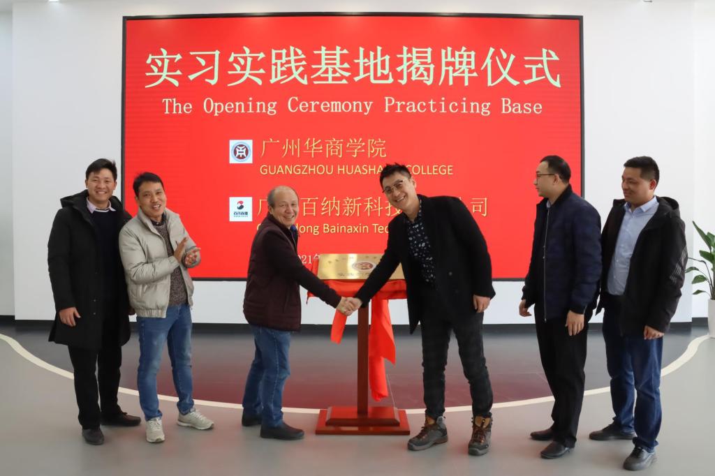 随后广州华商学院数据科学学院与广东百纳新科技有限公司校企双方举行了校外实习实践基地挂牌仪式。