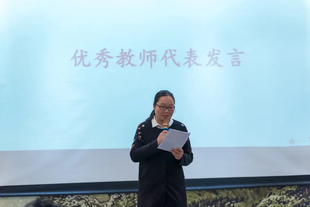 随后,杨莉云作为优秀教师代表进行发言。首先她向一直关心、支持我们的各位领导表示最衷心的感谢,其次她分享了个人在教学、教研等方面的心得体会,并表示将不负使命,继续潜心教学,直面挑战,精进教学方法,提高教学质量。以更高的标准严格要求自己,虚心学习他人长处,不断提高和完善自我,提升专业素养,为学院教育事业发展添砖加瓦。