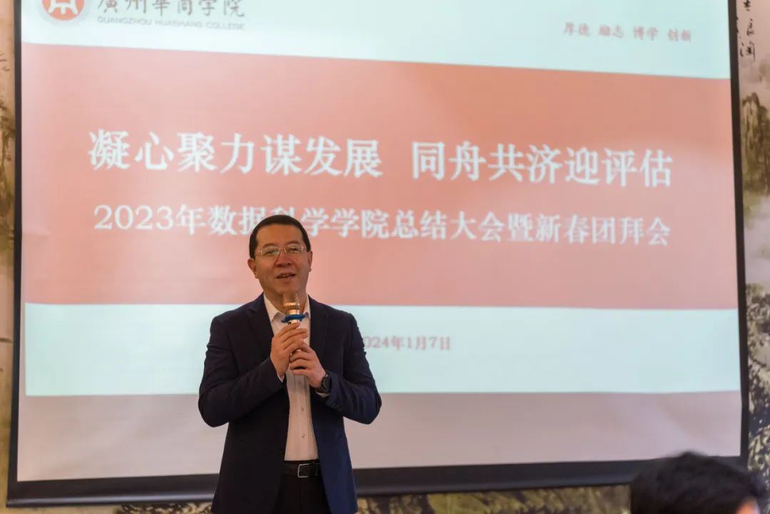 冬至阳生,岁回律转。2024年1月7日,广州华商学院数据科学学院举行2023年总结大会暨新春团拜会,学院全体教职工参加活动。广州华商学院支戈壁副校长、吕峻闽副校长、原副校长韩兆洲教授莅临现场,会议由数据科学学院谢嘉希主持。