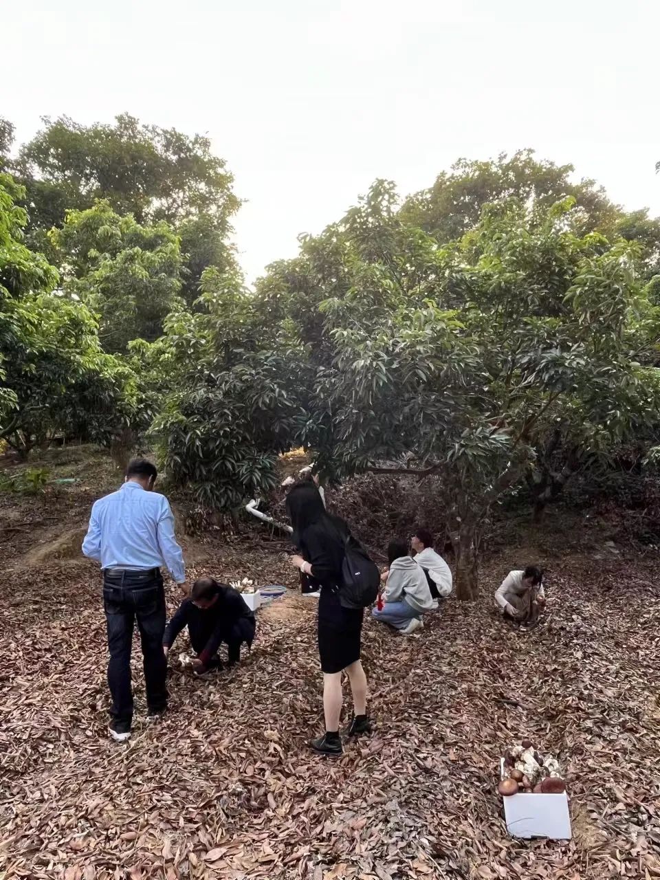 为了“深化产教融合,助力乡村振兴”,2024年1月7日,广州华商学院数据科学学院电子商务系专业负责人孟晓明教授、电子商务系主任李加军老师、姚仙丽老师带领9名学生一同前往广州增城区荔城街庆丰村马屋村的荔枝果园开展直播合作基地考察。