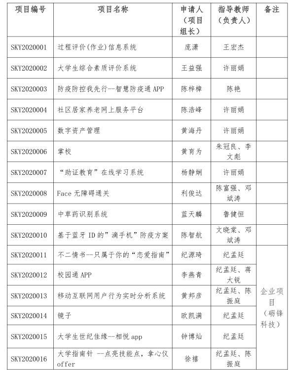 根据《关于组织 2020 年度数科院学生工作室科研项目申报的通知》及《学生开发工作室章程》要求,经个人、指导教师申请及学院审核,决定数据科学学院许丽娟等 10 位教师指导学生申报的 16 项学生工作室科研项目予以立项,每项经费资助壹仟元(可作为冲刺校级、省级等创新创业项目前期孵化的启动经费),现将立项名单予以公布,见附件 1。