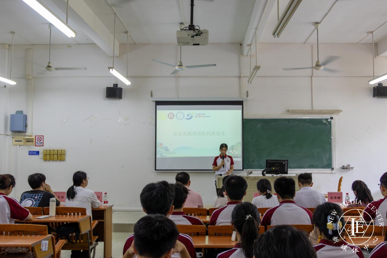 林柽莼同学代表全体实践队的全体成员们对学院领导和老师们长期以来的指导和关切表示了感谢,她提到大学生的成长成才离不开实践,只有做到实践,才能真正倾听时代的声音,回应时代的呼唤,她号召全体实践队同学们在此次的实践活动中都要做到知行合一、学以致用,充分展示青年的良好精神风貌,以实际行动助力国家发展,书写新时代的青春篇章。
