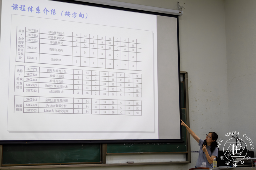 软件工程系主任田小玲副教授首先介绍了软件工程专业的课程体系和师资队伍。其次介绍专业的培养模式,软件工程专业采用“3+1”培养模式,即3年校内学习和1年企业实习,旨在培养具有软件开发实践和项目管理经验的复合型人才;专业方向涵盖企业数字化和软件开发,并注重实践能力的培养,通过引入企业经验丰富的教师参与实践课程教学,以及与知名企业合作,为学生提供丰富的实践机会。田老师还向新生介绍了软件工程专业的多种发展路径,包括考取研究生、从事软件开发、游戏开发、移动终端开发等工作。强调学院积极鼓励学生参加各类学科竞赛,如蓝桥杯、ACM大赛等,并为学生提供考取各种证书的机会,以提升学生就业竞争力。最后,田老师为同学们提供了学习建议,鼓励大家主动学习、保持好奇心和求知欲、注重实践与创新、尽早确立目标并为之努力。