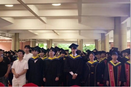 6月21日早上,广州华商学院人工智能学院2025届学位授予仪式在启智楼一楼隆重举行。广州华商学院党委副书记、纪委书记、副校长吕峻闽教授,广州华商学院人工智能学院院长戴经国教授,人工工智能学院党委书记、副院长杨波副教授,人工智能学院副院长叶仕通教授,人工智能学院院长助理洪绍勇副教授,人工智能学院院长助理杨本胜副教授,人工智能学院系主任黄富平副教授、田小玲副教授、杨莉云副教授、颜远海副教授、石金成副教授出席了本次典礼。此外,各系负责人、专业教师代表、各年级辅导员、学生家属与 1300余名毕业生共同参与了本次典礼。学位授予仪式由人工智能学院党委副书记、副院长陈洋广主持。
