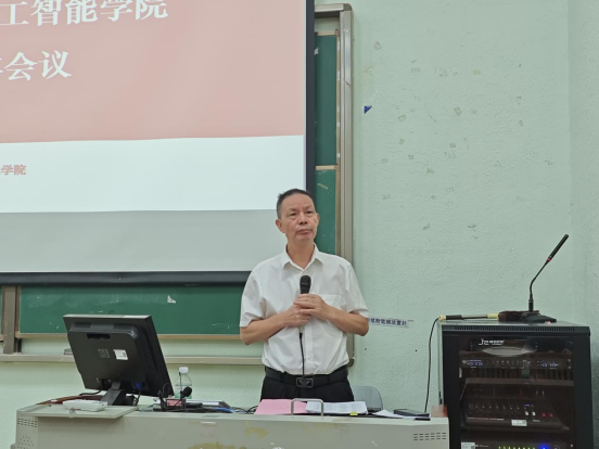 2025年9月16日下午,人工智能学院于励志楼D208成功召开2025年下学期人工智能学院第二次全体会议。本次会议聚焦青年教师培养、师徒制实施、毕业论文质量提升、教学材料归档等关键议题,对合格评估工作展开深入部署和动员。会议由戴经国院长主持,学院领导班子及全体教职工参会。