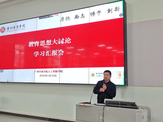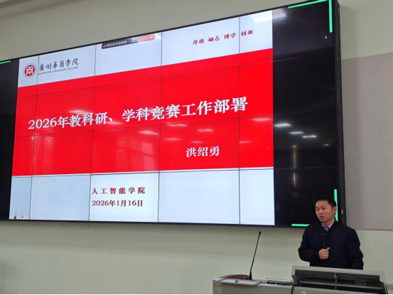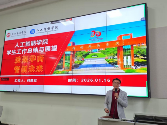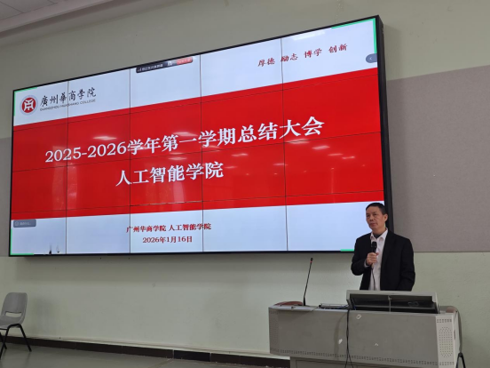 2026年1月16日下午,广州华商学院人工智能学院在励志楼B207召开2025-2026学年第一学期期末总结大会。会议由戴经国院长主持,学院领导班子及全体教职工参加会议。