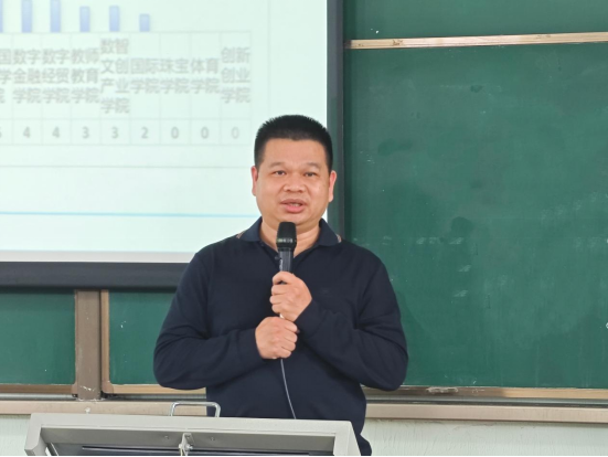 叶仕通副院长就近期教学工作及评估建设情况作了专题发言。他通过详实的数据分析,指出了学院目前在课堂管理、学风建设中存在的问题,要求全体教师加强课堂管理,优化教学互动设计,营造良好学风。他还介绍了学校推进的“二协同、五融合”应用型人才培养思路,并对学院已立项的“五融课程”建设工作作出具体安排。此外,他还就毕业实习走访、图书借阅率提升、试卷及论文管理规范等问题提出了改进建议,鼓励教师以主人翁姿态积极参与学院各项建设。