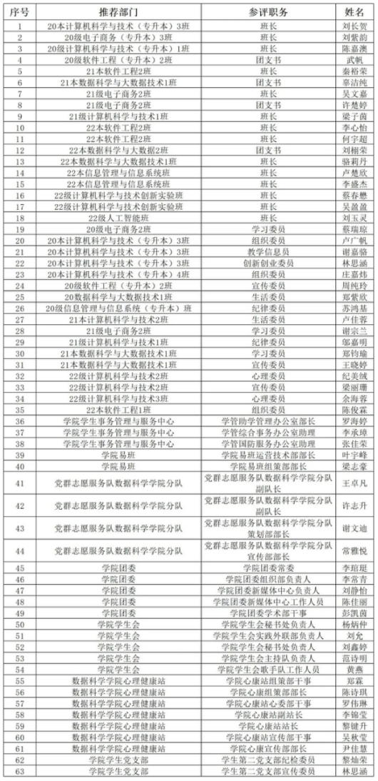 学院资讯 | 数据科学学院2022-2023学年优秀学生干部初审名单公示