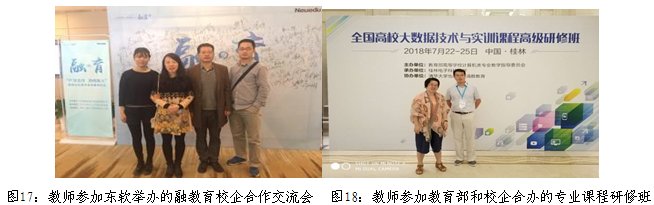 如图17-20所示,开展校企合作交流会,教师培训,推进校企深度融合,构建多元、动态的协同创新模式和开放、融合的协同创新体制机制。通过企业培训实践锻炼,专职教师素质业务能力得到提升,总结学习实践内容和经验,将其应用到实际教学中。