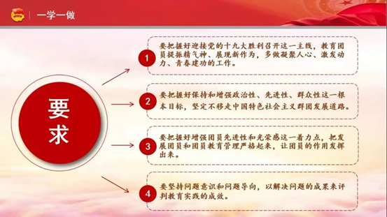 随后,他给我们讲解有关“一学一做”的内容。他主要从“两学一做”引入,向同学们详细讲解了什么是“一学一做”。他指出,当代共青团员要做到“学习习近平总书记系列重要讲话精神,做一名合格共青团员”,而作为一名在校大学生一定要做到“学习校纪校规,遵守学校章程,做一名合格大学生”。