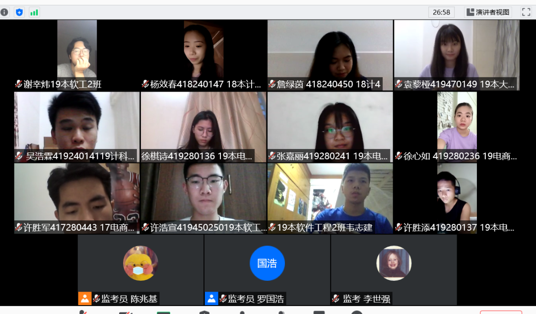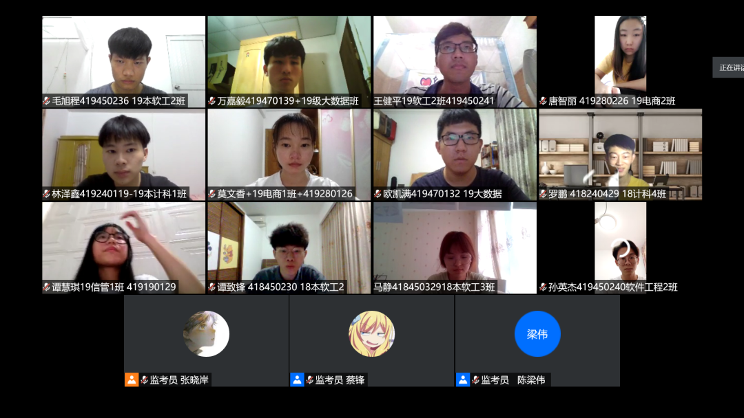 数据科学学院20级助理班主任招聘笔试于2020年6月19日19:00在腾讯会议中开展。本轮线上笔试采用腾讯会议对面试者进行全程监督以及录制考场视频留底方式最大程度上保证本轮笔试的公平公正。