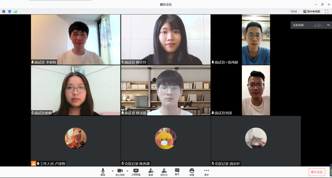 经过一轮笔试的角逐后,数据科学学院助理班主任招聘一轮面试于2020年6月23日和6月24日在腾讯会议进行线上面试。