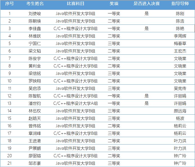 我院学子积极报名参赛,纷纷在大赛中交出一份令人满意的答卷,展现了数据科学学院学子积极进取的精神以及高超的创新意识。我院共有21位同学获奖,其中4位同学荣获一等奖,9位同学荣获二等奖,8位同学荣获三等奖。
