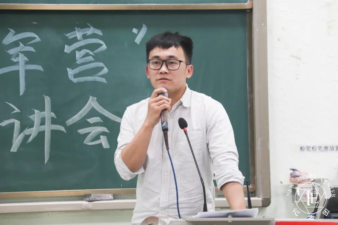 吴晋同志发言。身为武警队员的他,曾是国庆阅兵部队中的一员。吴晋同志向我们讲述了军人的品质,亲述他在新年时保护人民而不得与家人齐聚,表达了军人们的使命感与责任感,体现了军人们舍小家为大家的伟大奉献精神。