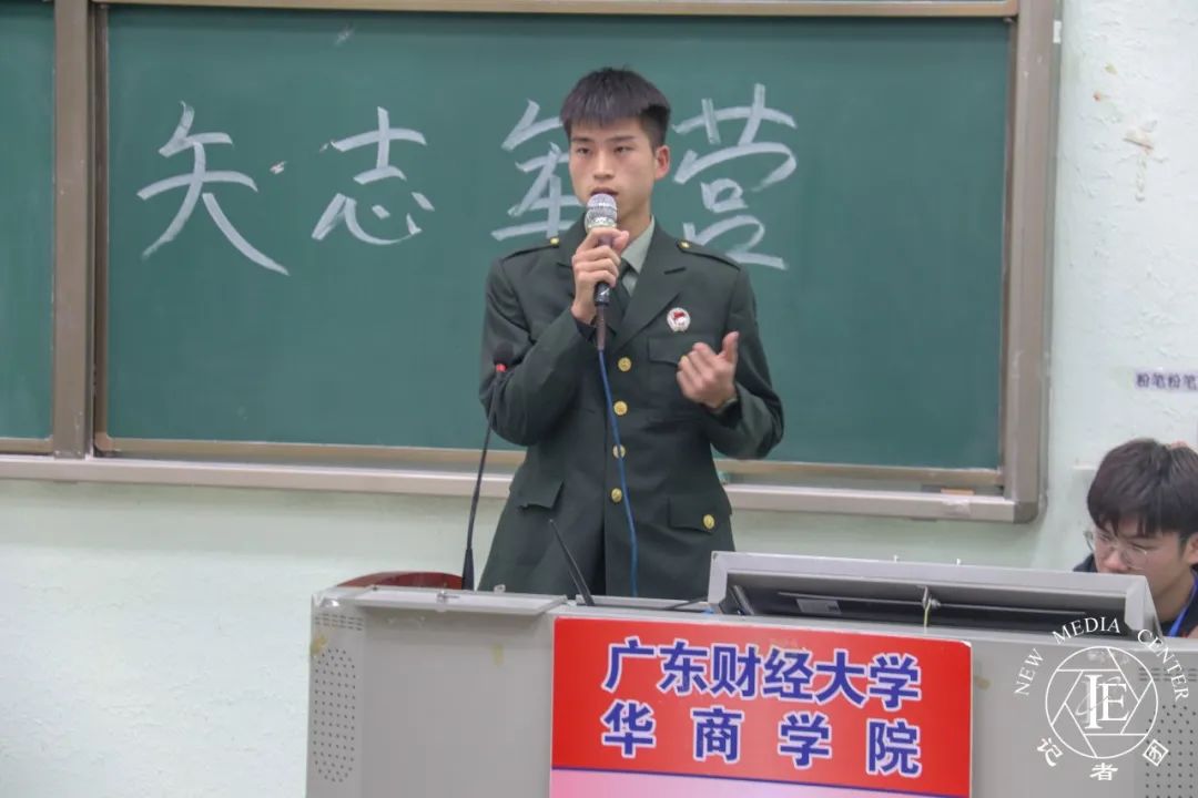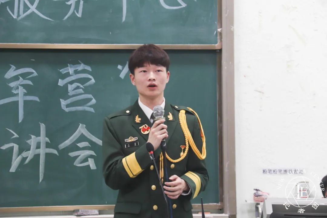 王立为同志发言。作为特种部队的王立为同志被要求游泳6小时,高空跳伞次数达到20余次他使用过几十种武器,是部队新兵中的神枪手他以自身的经历,带领同学们一起感受特种兵们的各种经历展现了军人们坚强不屈的铁血意志。