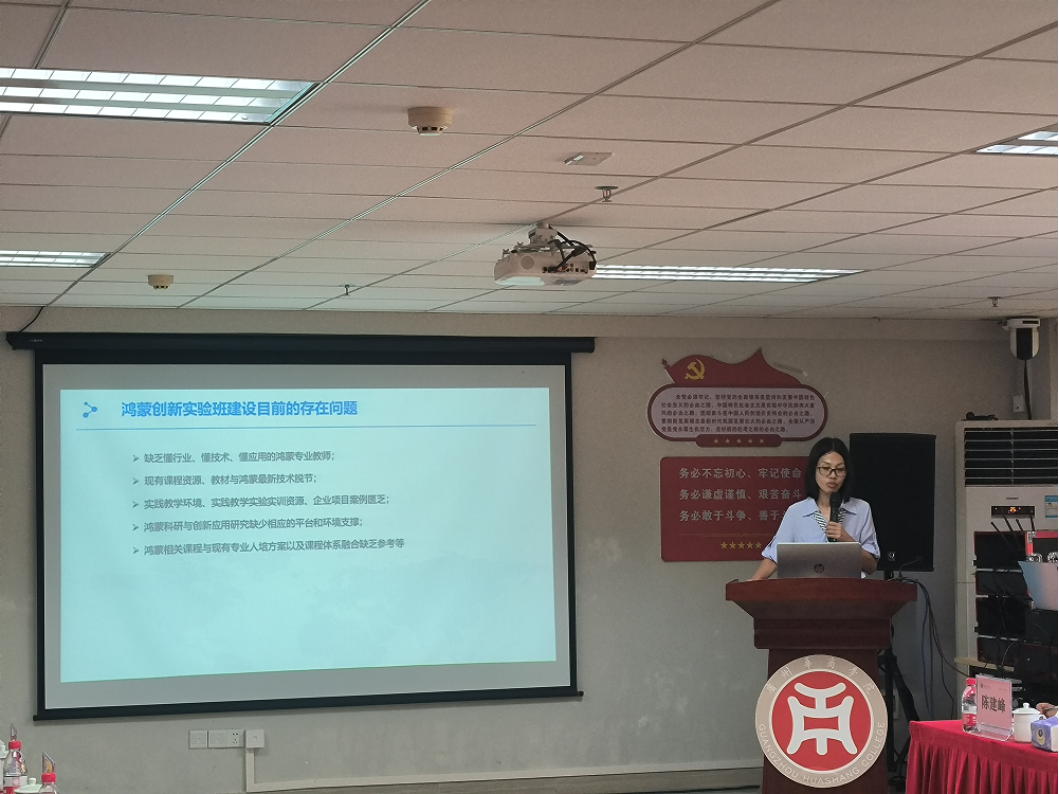 会议第五项,由广州华商学院数据科学学院计算机系副主任卢清秀作主题“基于信创技术的人才培养机制探索与实践—以华商鸿蒙创新实验班为例”发言。鸿蒙创新实验班是与腾科公司共同校企联合培养的,把华为鸿蒙技术职业认证课程引入校园,结合华为生态企业岗位用人需求,校企双方联合培养,旨在培养实用型、创新型、复合型人才。